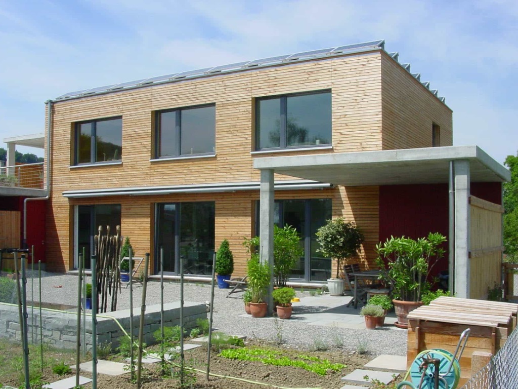 Ausgezeichnet mit dem Schweizer Solarpreis 2003 Erstes zertifiziertes Minergie-P Gebäude (AG-001-P). Beiheizung über die Komfortlüftung, Kleinstwärmepumpe und Erdreichwärmetauscher. Solaranlage für Warmwasser. Photovoltaikanlage für eine ganzjährig ausgeglichene Energiebilanz für Heizung, Lüftung, Warmwasser sowie Beleuchtung und Haushaltstrom.